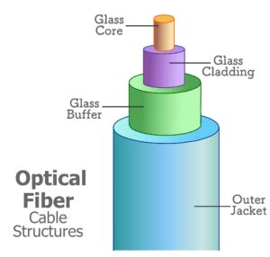 - Inti kabel terbuat dari kaca atau plastik berdiameter mikro