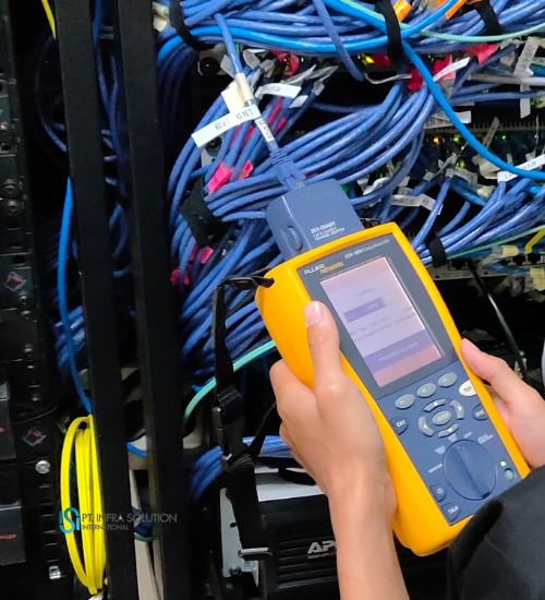 Sebuah proyek IT tidak hanya berhenti pada instalasi. Proses testing dan commissioning adalah tahap krusial untuk memastikan seluruh sistem yang dipasang benar-benar berjalan sesuai standar dan kebutuhan klien. Untuk mendukung akurasi hasil, PT Infra Solution International menggunakan alat uji profesional Fluke Network, yang sudah terbukti keandalannya dalam mengukur kualitas jaringan dan infrastruktur IT.